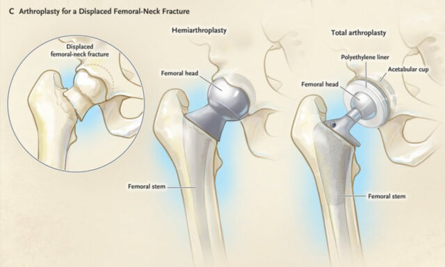 - Total hip replacement emergent surgery (that would not have been needed but for the improperly aggressive rehabilitation activities after the first surgery)