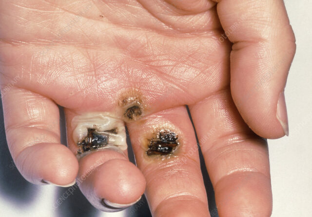 Plaintiff claimed that as he was attempting to remove an awning, all of its weight came down on him and he felt a shock in his hand. The next thing he knew, he was on the ground and two fingers (middle and index) were burning and he had pain all over his body. A witness saw smoke coming from his head and mouth. He was taken by ambulance to the hospital where his burns were treated and he was released.